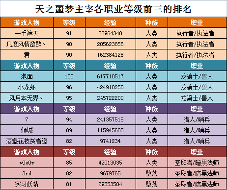 活动内容:将在新区开展冲级大赛,决出规定时间内各职业等级排名前三的角色: