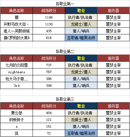 2、相同角色名玩家分别获得两个排名是转族导致!