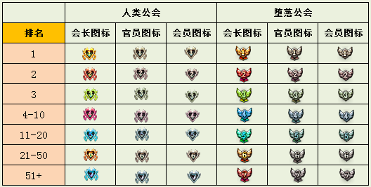 公会等级对应的图标匹配说明