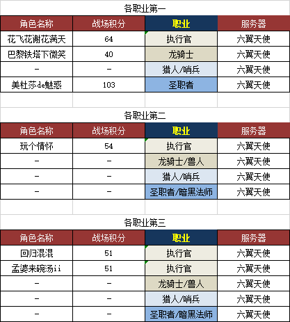 新区“六翼天使”【战争之王】第四周赛排行榜名单公布
