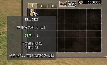 最后要说的就是勇士徽章。勇士徽章无法交易,无法丢弃,也无法购买,只能做任务获得,但是作用会相当大。随着战场任务的开启,战场技能,战场装备也会慢慢到来。勇士徽章将是你想获得战场技能,战场装备的必需品。