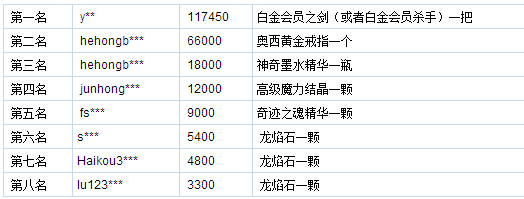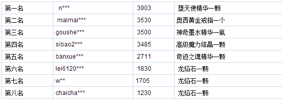 活动内容:在活动期间,充值排名前8位玩家均可获得豪礼赠送,具体奖励如下: