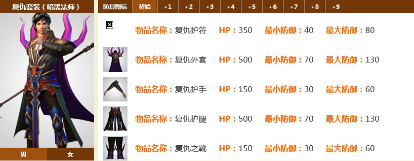 这两套装备中,男角色体现了暗黑法师的邪恶、严肃,女角色更是邪恶中带着性感魅惑。完全符合了暗黑法师这个职业的气质。接着我们继续来曝光“复仇”套装的属性。