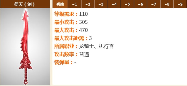 倚天:上古神魔大战时期遗留下来的绝世神兵,由西方精金所铸。此剑锋利无比,可吹毛断发。执行官、龙骑士两个职业可以使用。