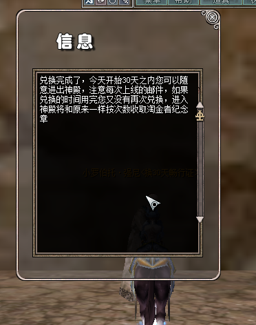 玩家可以在神殿入口复活点NPC处用50淘金者纪念章购买神殿畅行证