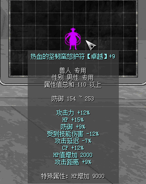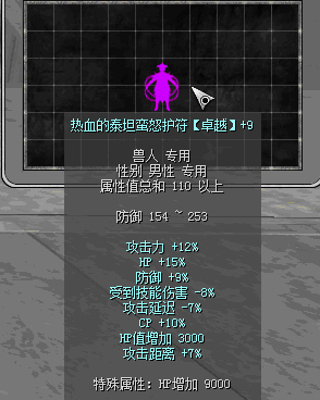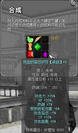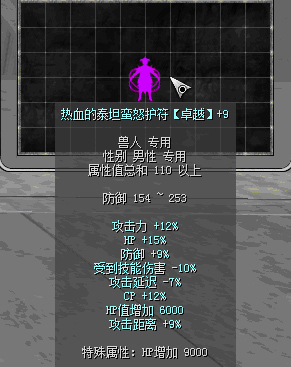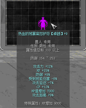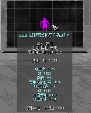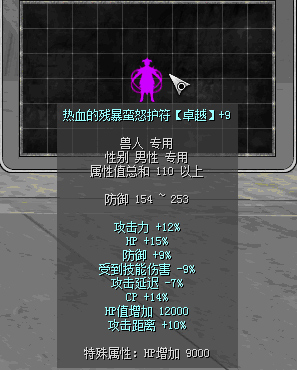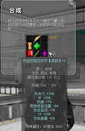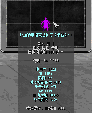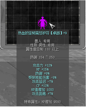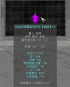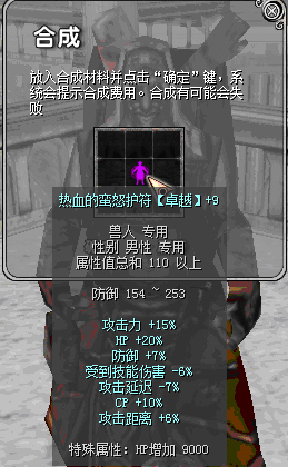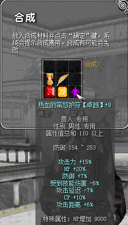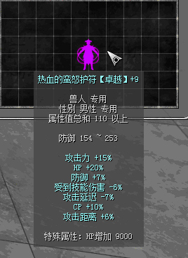 原110热血前缀:攻击力15%、HP+20%、防御+7%、攻击延迟-7%、CP+10%、受到技能伤害-6%、攻击距离+6%