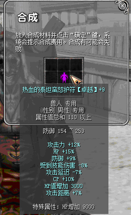 ♢返回110热血基础前缀:开发过潜力的装备+黄金羽毛+龙焰石+500W